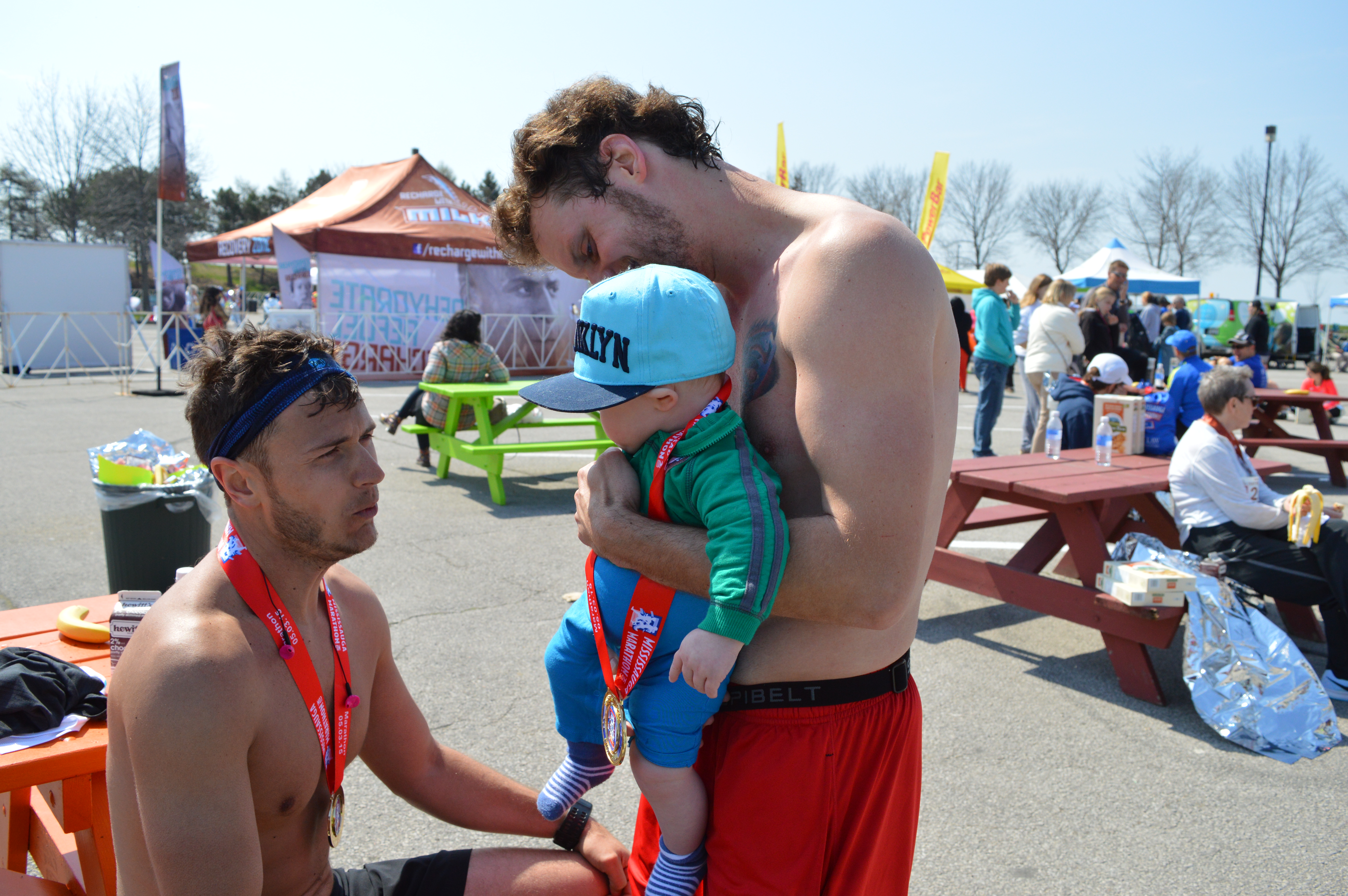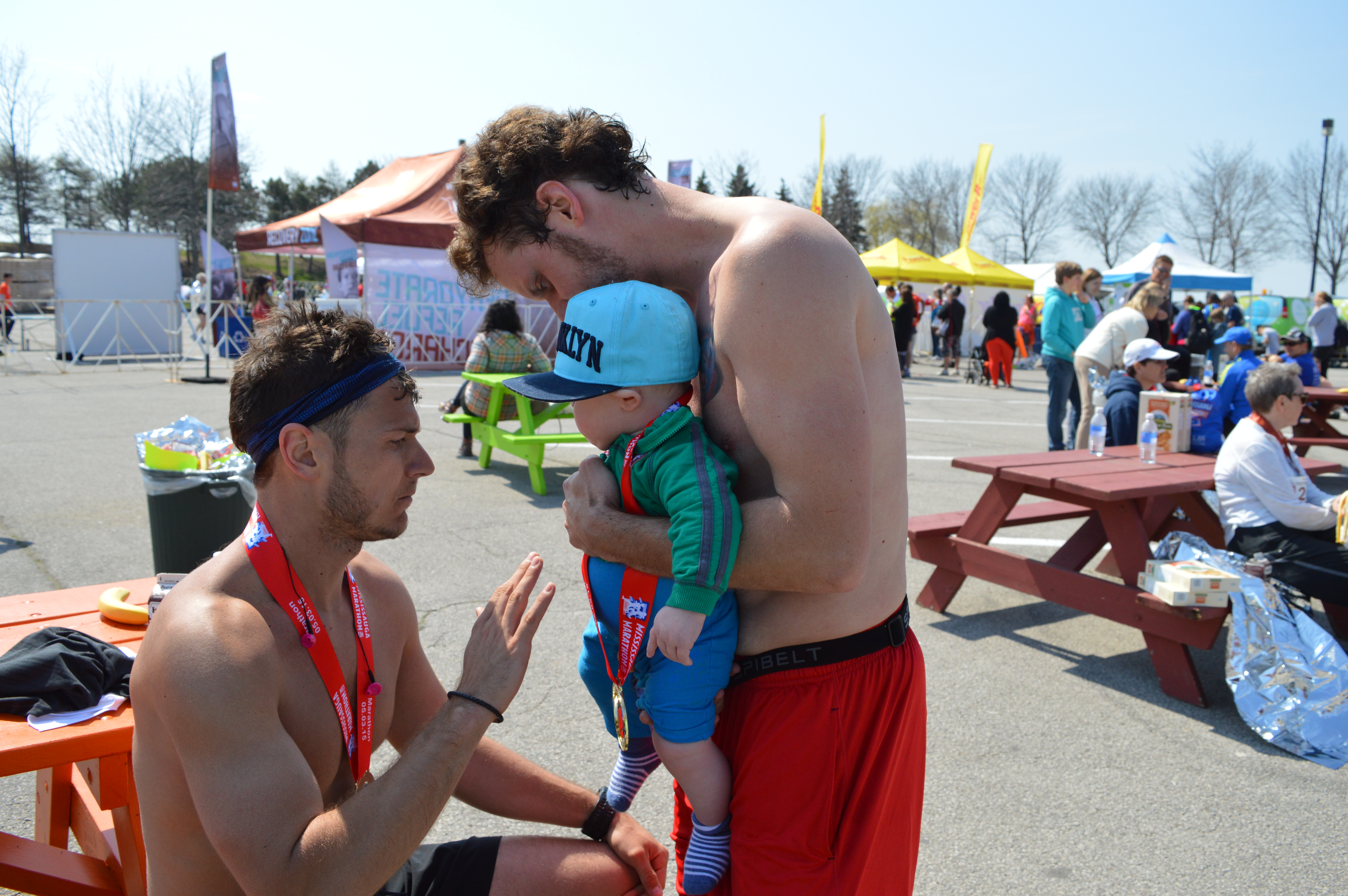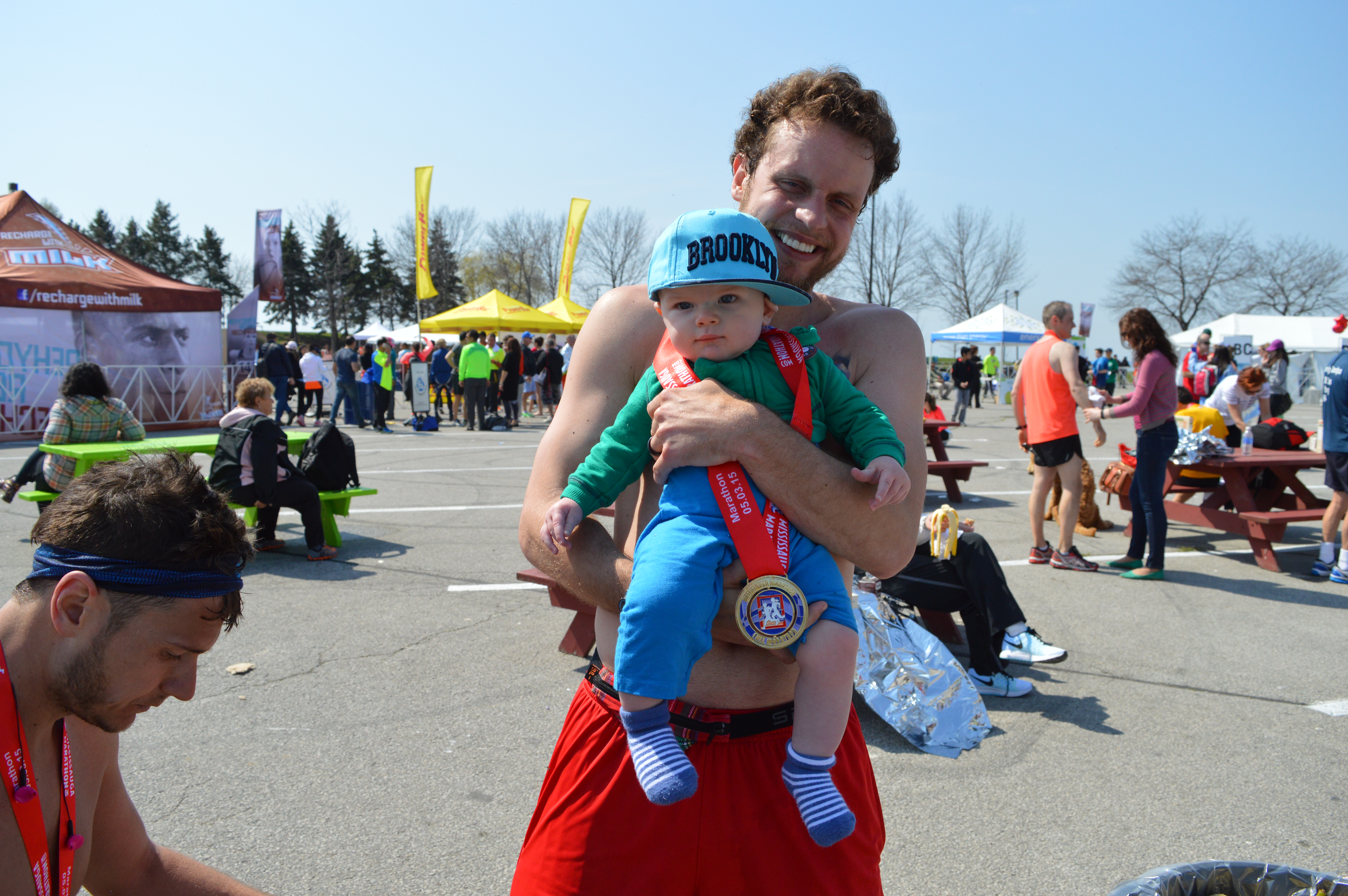 So today my husband and his running partner Chris took part in the Mississauga Marathon; which for those of you who don’t know is 42.2km!!! Since I work two part time jobs (both of which require me to work two weekends a month!) I haven’t really been able to go and watch any of their races over the past two years. The 30K Around the Bay was the first big race I was able to watch thanks to being off on maternity leave! I could have gone to watch them in the ScotiaBank Marathon back in October but I was 38 weeks pregnant and had been having some serious Braxton Hicks contractions so I thought I better not risk it.