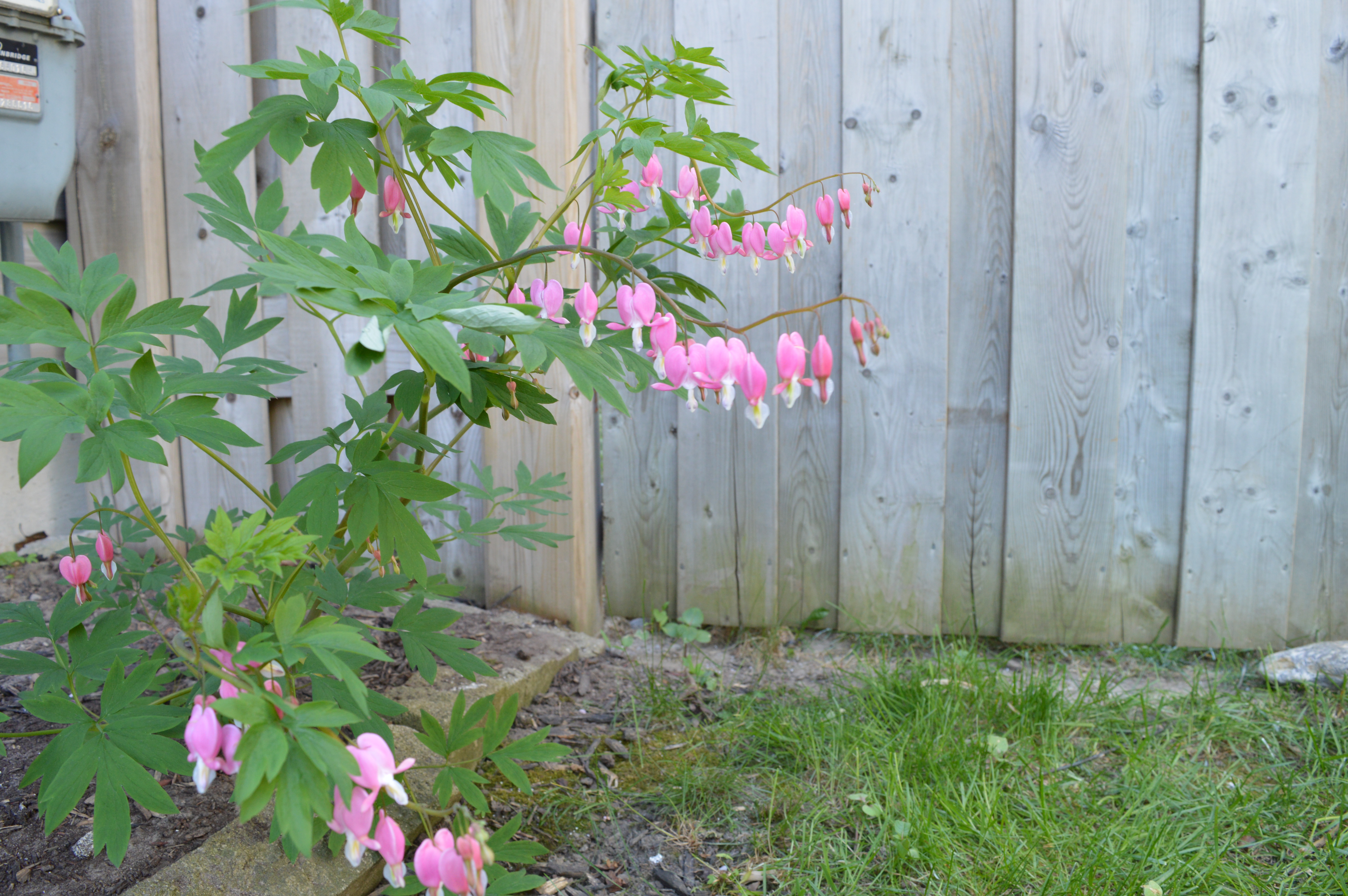 Ever since I was a kid my mom always had at least one bleeding heart plant so when we bought this house four years ago and I discovered there were two bleeding heart plants I was over the moon excited. They’re just so cute and bring me right back to my childhood every time I look at them!