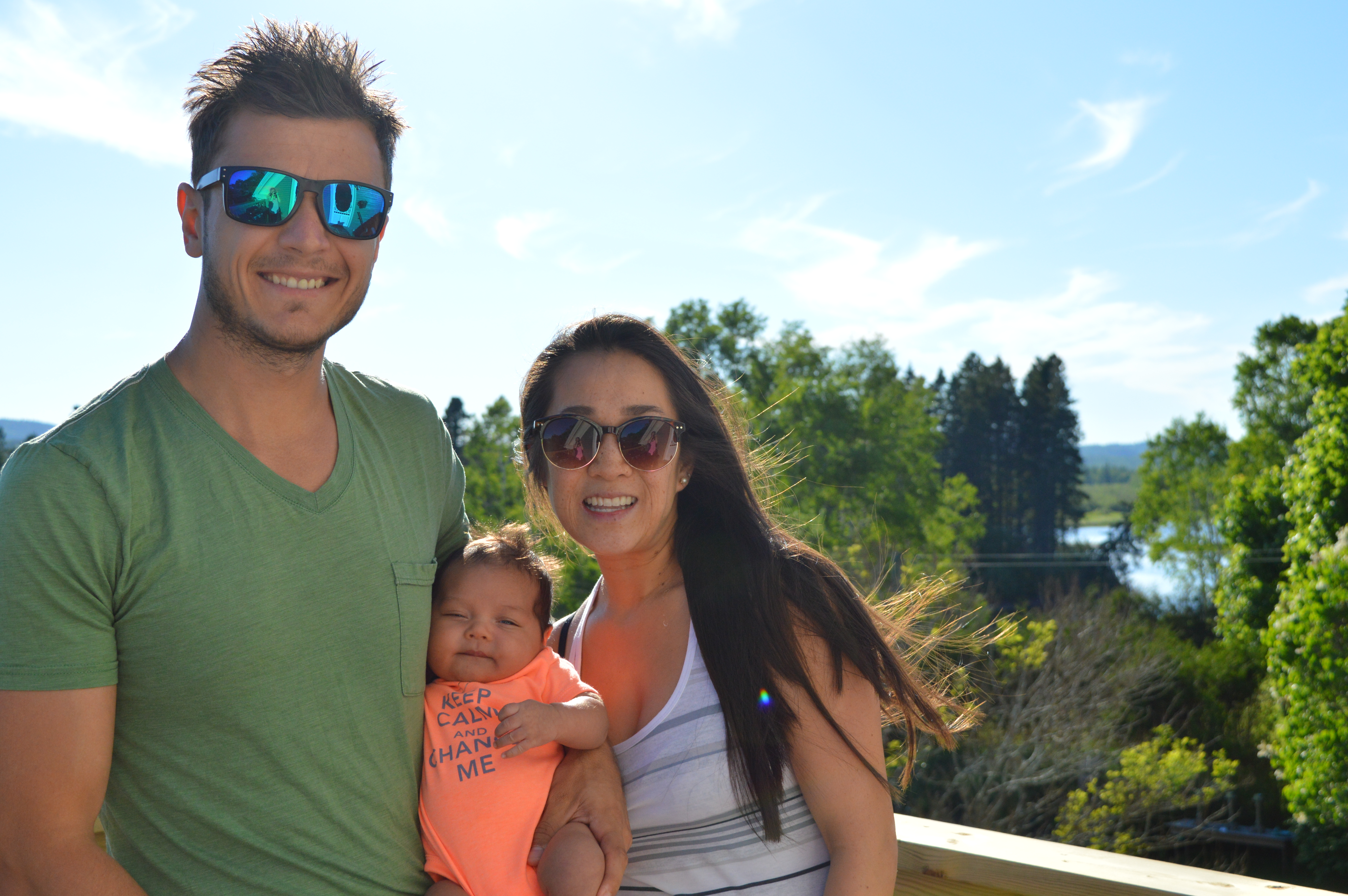 Chris, Caralin, and Baby G on the balcony of our apartment! The view was just unreal!