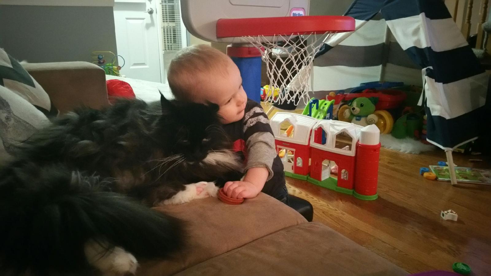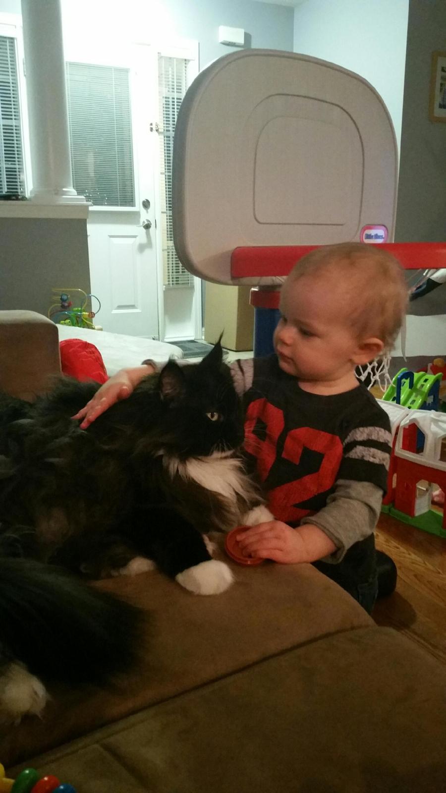 Lover of all the cats, but mostly Ari. It’s the cutest thing ever to watch Nate’s face when he sees one of our cats. He immediately lights up and will start clapping. It’s hysterical. He especially goes crazy when he sees Milo because Milo spends most of the day hiding somewhere. Ari on the other hand, is always out in view of Nate. Nate loves coming over to Ari and putting his head on him. Ari is always so patient with Nate which makes me so proud since he was the cat I was most worried about.
