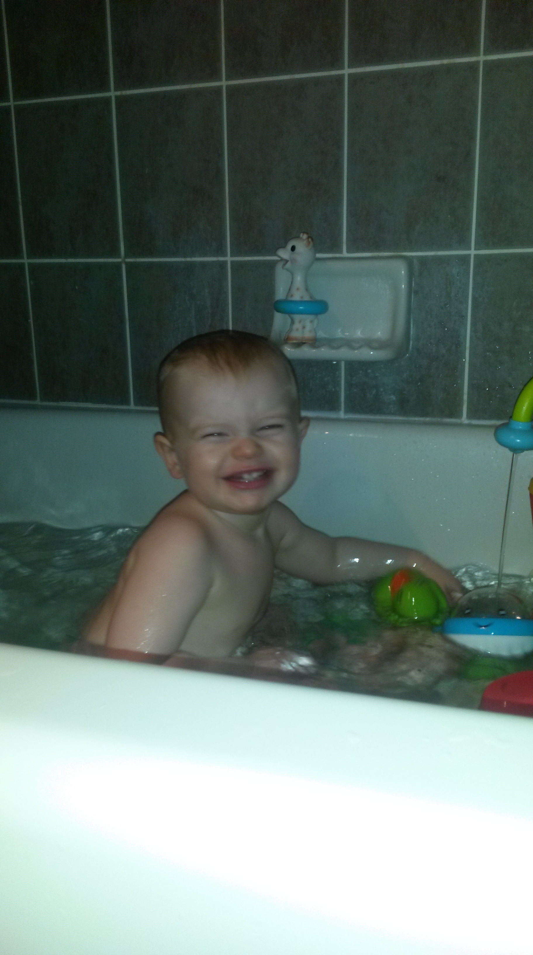 He’s working on talking. He can really only say mum-mum and dadada but we’re working on it. I’m not overly concerned just yet. He’ll get there.