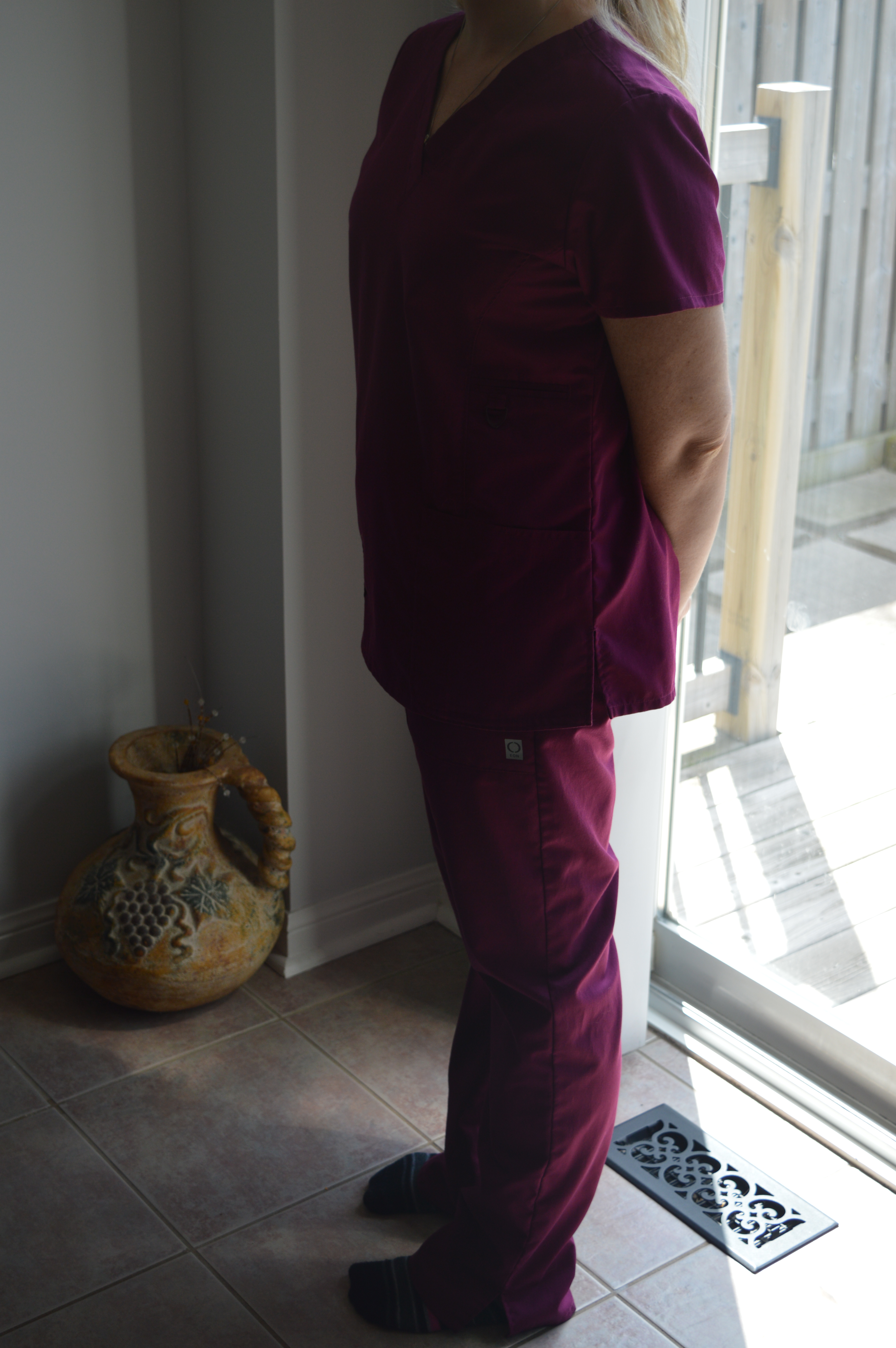 In order to best test out the scrubs, I wore them at both my places of employment. Although, I work as a nurse at both jobs, the actual description of what I do is quite different. While at the long-term care home, I’m just handing out medications and doing treatments, at the hospital I’m participating in the hands on care aspect. So being able to see how these scrubs compared in different settings was an absolute must for me.