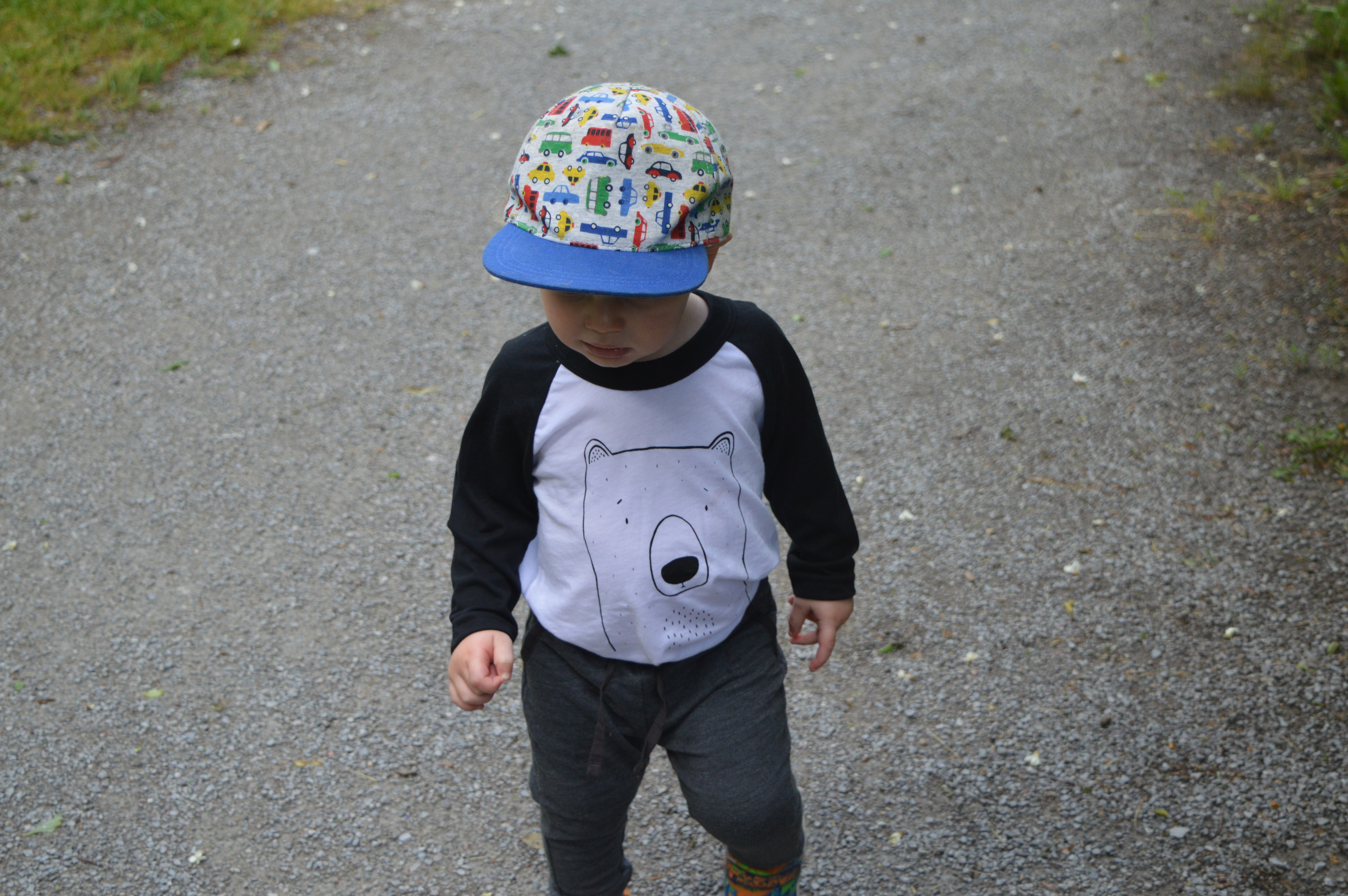 Now perhaps you’re sitting there thinking to yourself, the title there says Nature Walk with Nate and Bob the Grizzly Bear; who’s that? Well dear readers, Bob the Grizzly Bear is one of the magical creations from The Wild Kids Apparel. I’ve gushed over this clothing line so many times that I swear people must probably roll their eyes when they hear me utter the words “have I ever told you about The Wild?”. But honestly, I cannot get enough of this brand! I’m constantly buying clothes from Adriane because it kills me when Nate starts outgrowing the outfits he already has. He’s literally got four raglan shirts with different characters hanging in his closet right now! I thought he’d look super cute wearing his Bob the Grizzly Bear raglan while we were out in the forest. And just a little FYI, he’s also got Finn the Fox, Rocky the Raccoon, and The Woods in his never ending wardrobe.