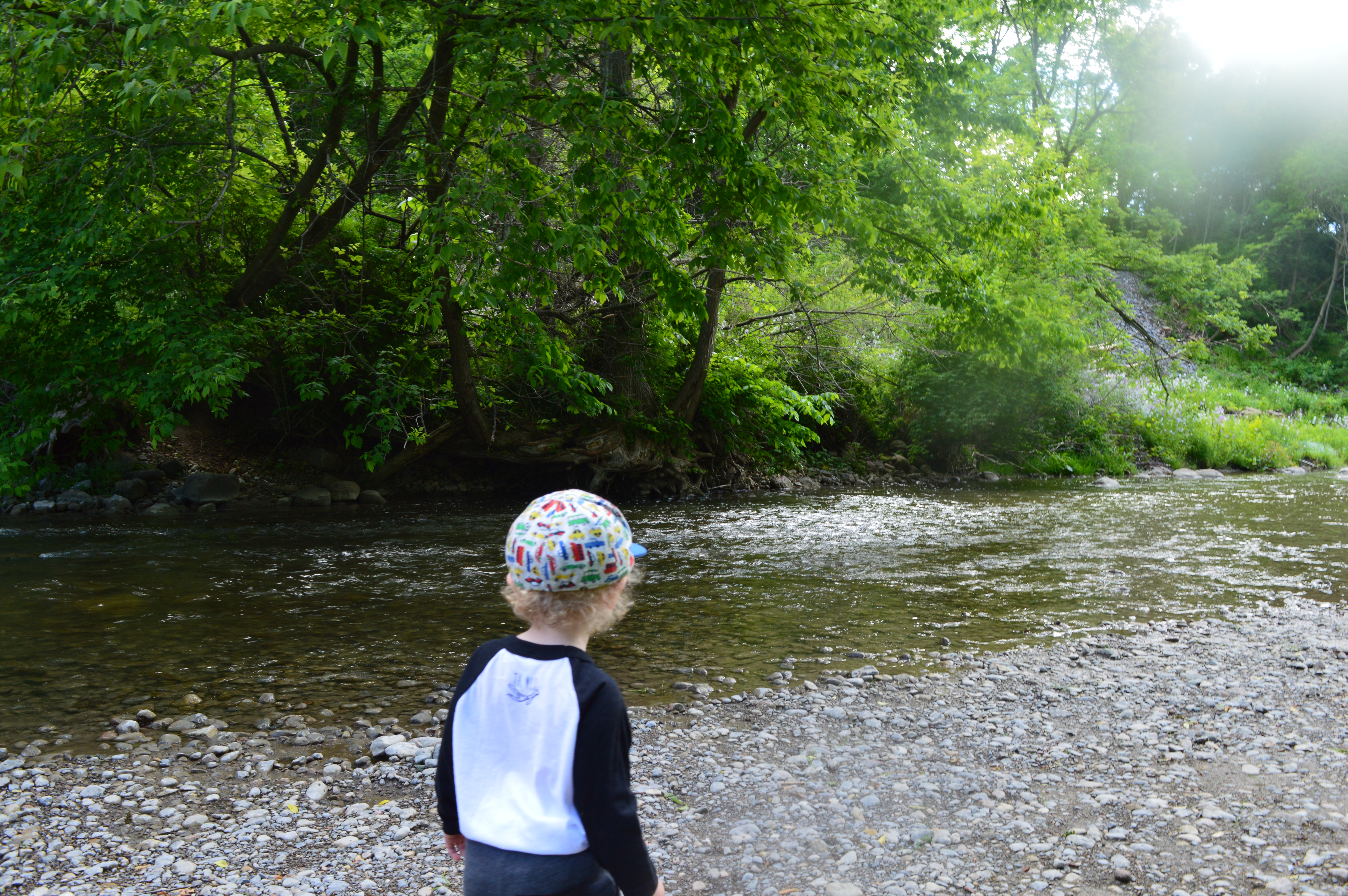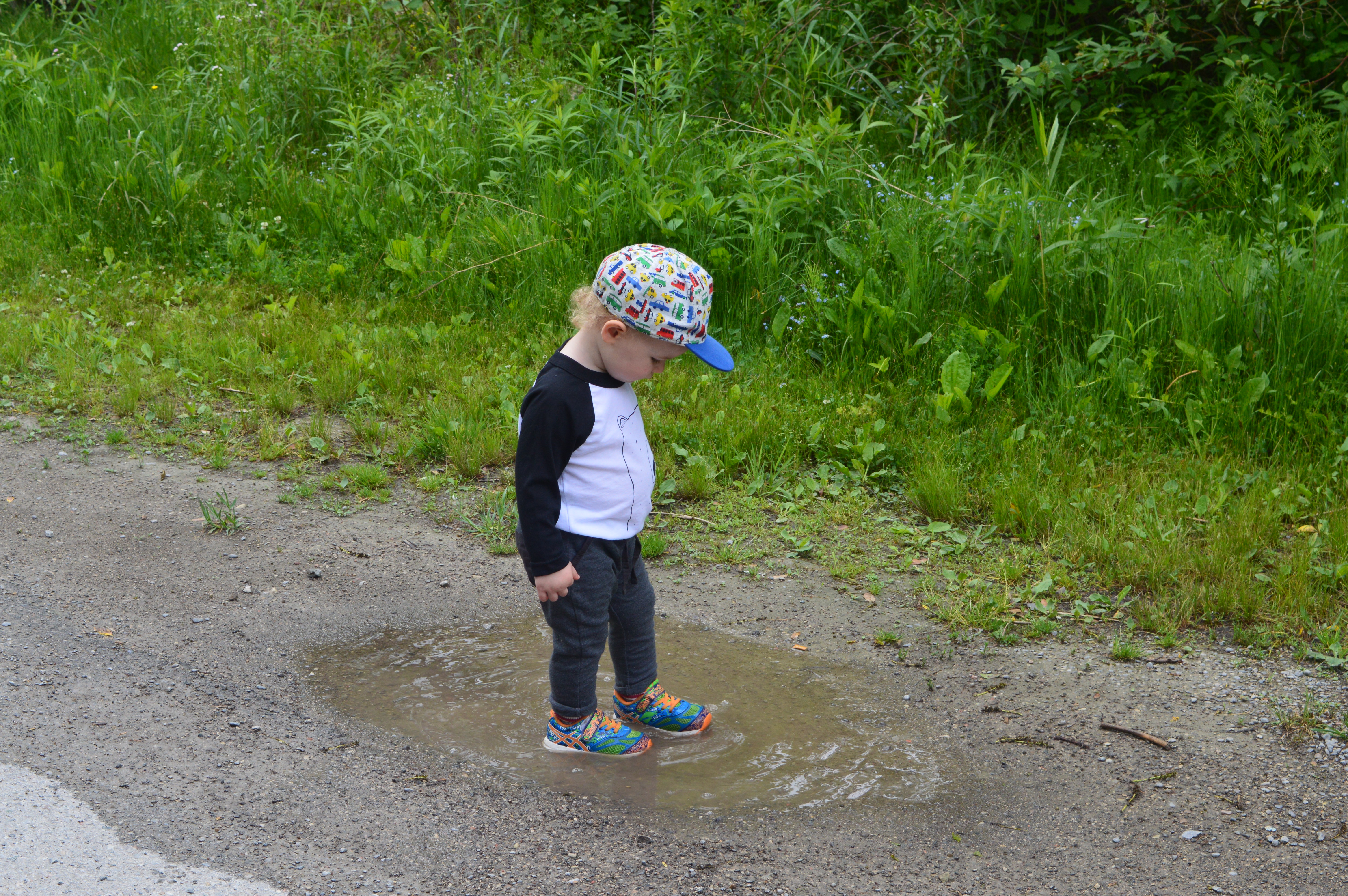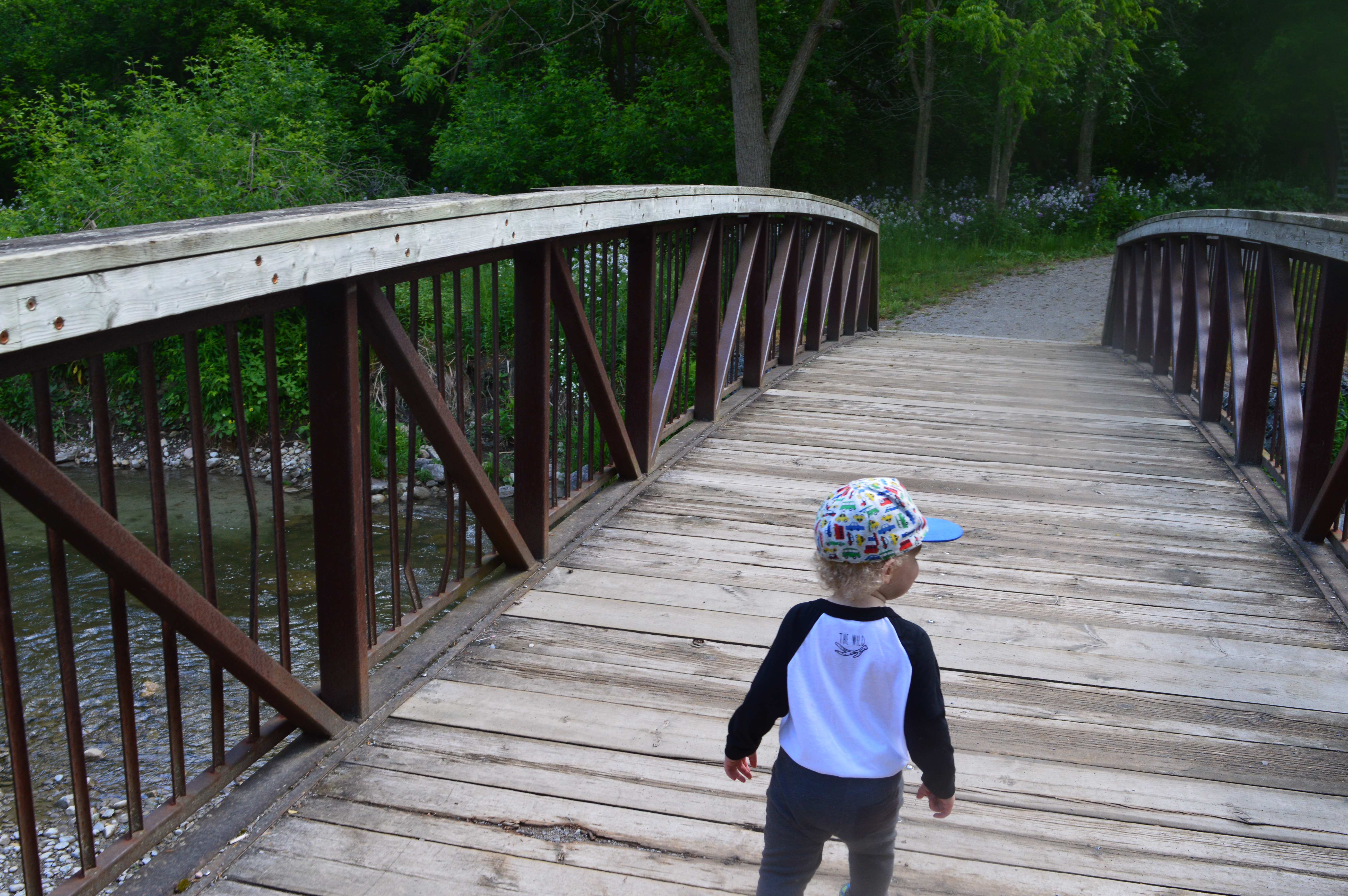 I took him down to the trail that runs through our little town and let him walk around while I snapped pictures of trees or flowers or birds and he really seemed to enjoy himself. I’m trying to get back into shape by being more active and eating healthier so I really love that Nate’s at this age where he can walk places and wants to be outdoors exploring. I think my favourite moment of our walk was when he decided to jump in some puddles. I thought about stopping him because he only had his runners on and I knew he’d soak his socks and feet but when I remembered how much I love the “Let Them Be Little” hash tag that’s gone around Instagram and I decided just to let him go for it. Of course, within the next 15-20 minutes he was definitely done with our walk and only wanted me to carry him because his feet were cold and wet but the mischievous look and coy smile on his lips right before he jumped in was totally worth it.