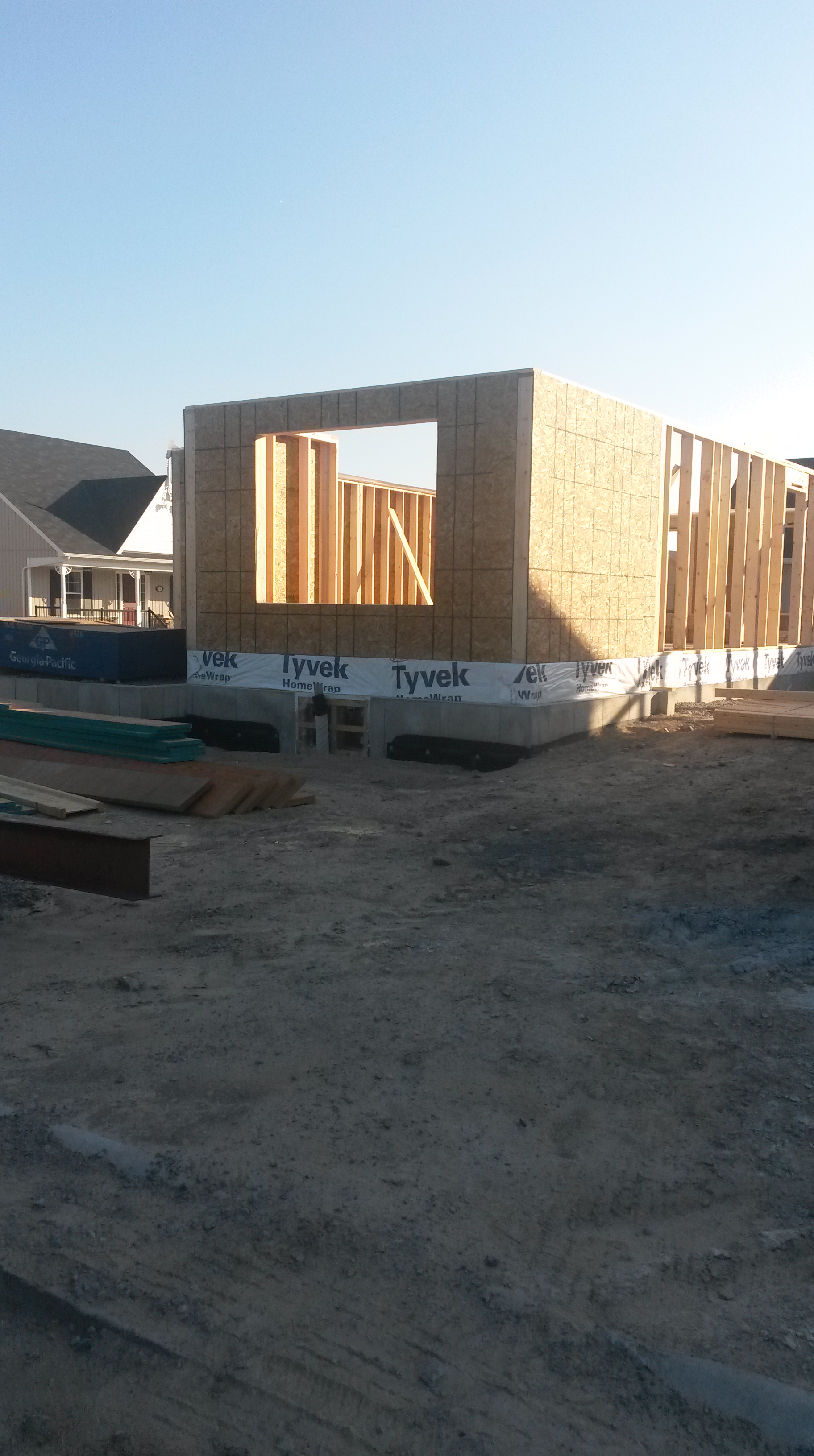 They framed out the whole first floor in about two days which was completely shocking to us. We were there on Saturday and it was still just the basement then by Tuesday we had the makings of a new house!