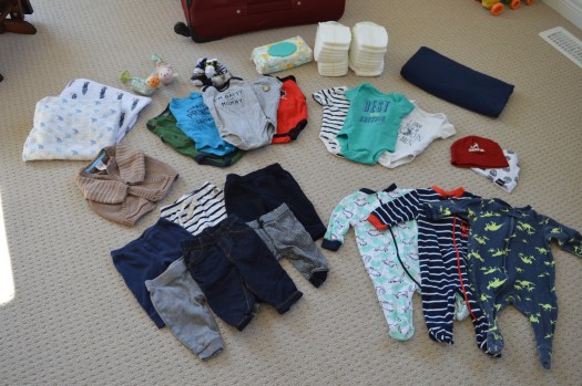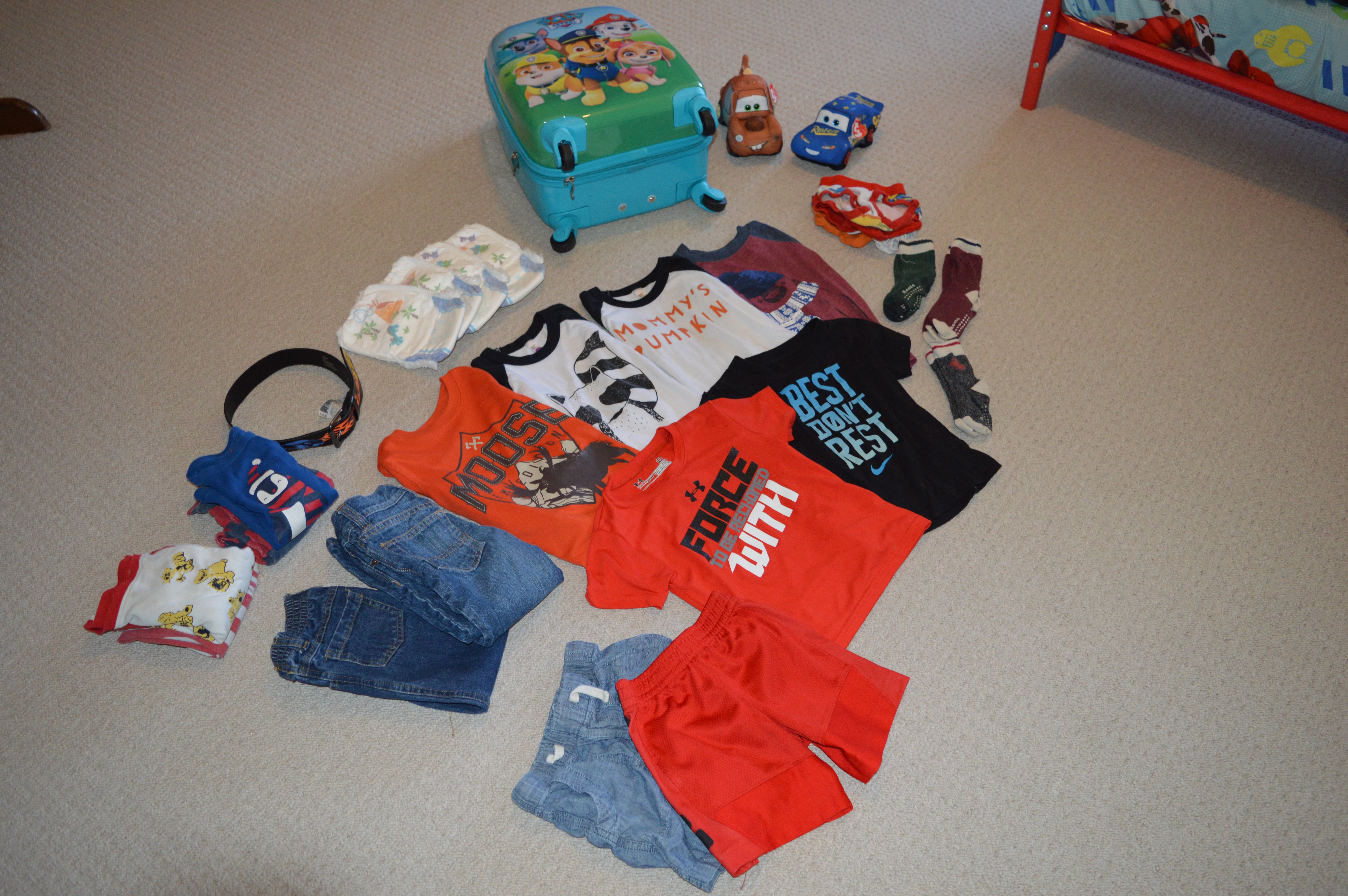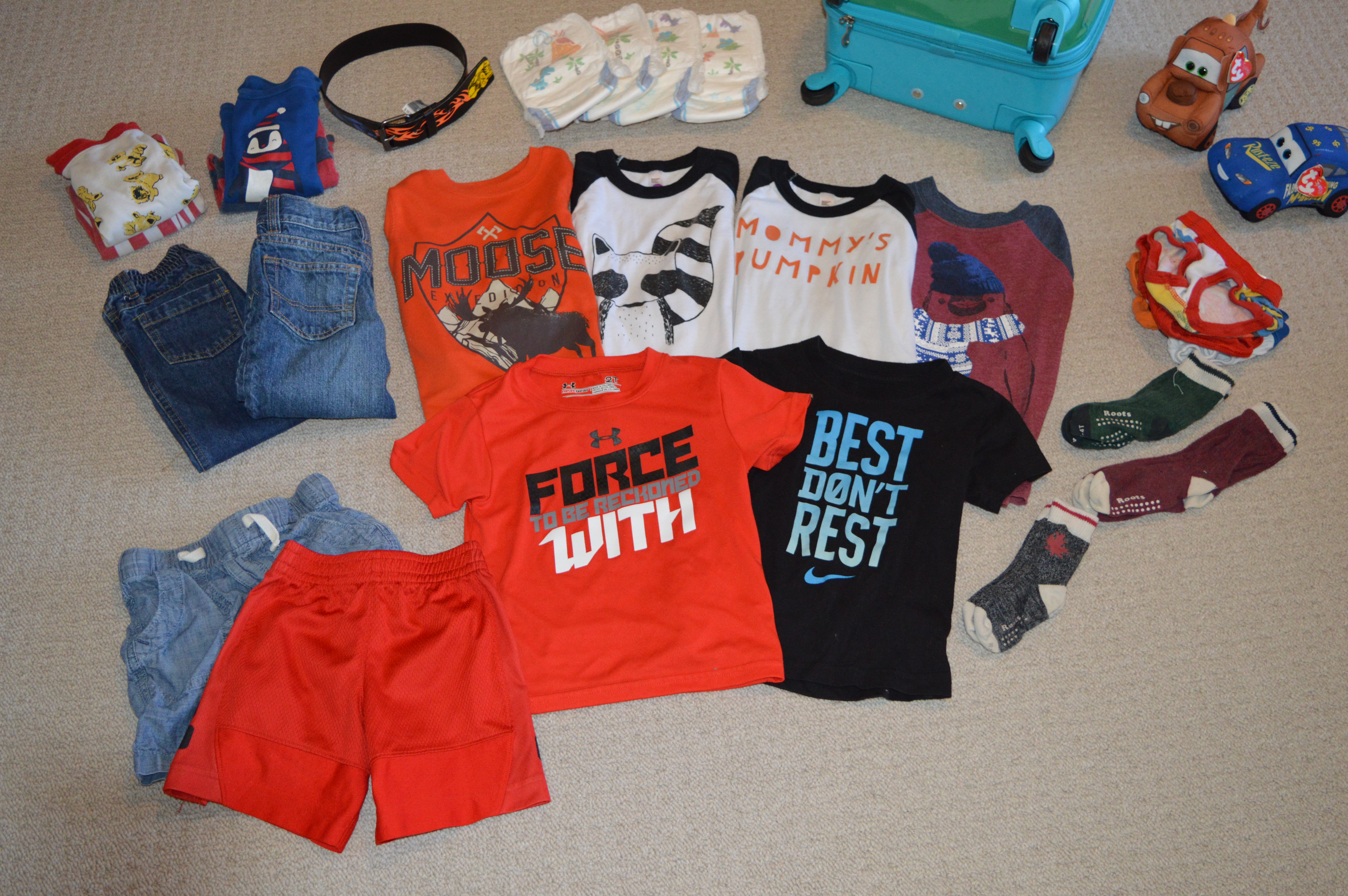On the weekend I started compiling a mental list of what I wanted to pack for both boys and since the weather cannot make up its mind, I definitely over-packed…again! But in my defense, it is hard packing for a three year old who on the (very) rare occasion still has an accident or two and a two month old infant who has a tendency to have a few explosive diapers. Here’s what I’ve packed for the boys…