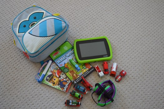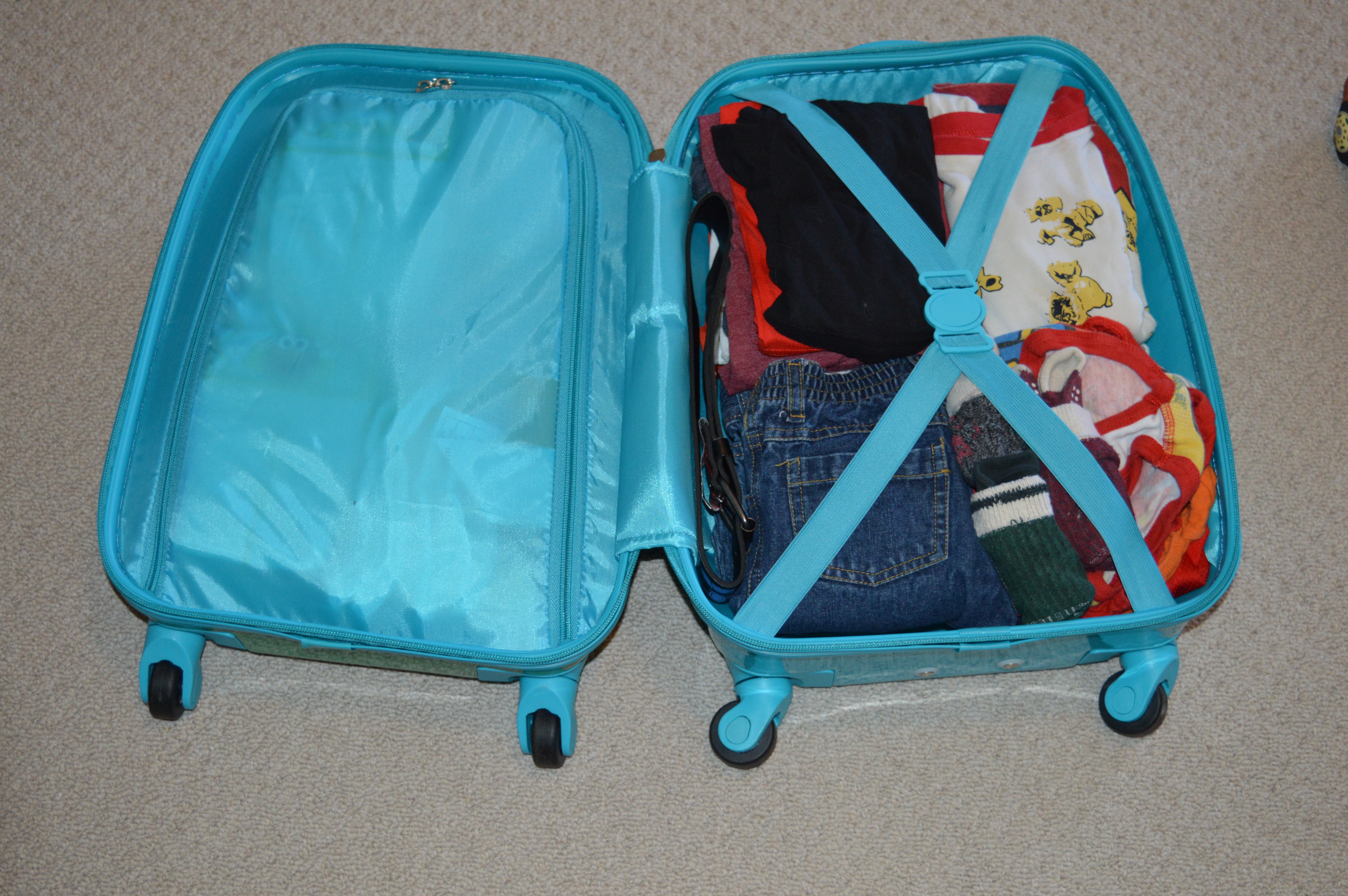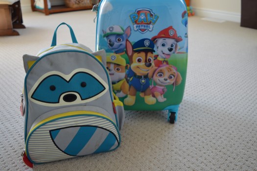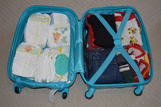 I packed all the diapers and wipes into the zip-up section of Nate’s Paw Patrol suitcase and then since Eli’s clothes are so small, I just packed them into my suitcase which worked out nicely and still allows me plenty of room to over-pack for myself!