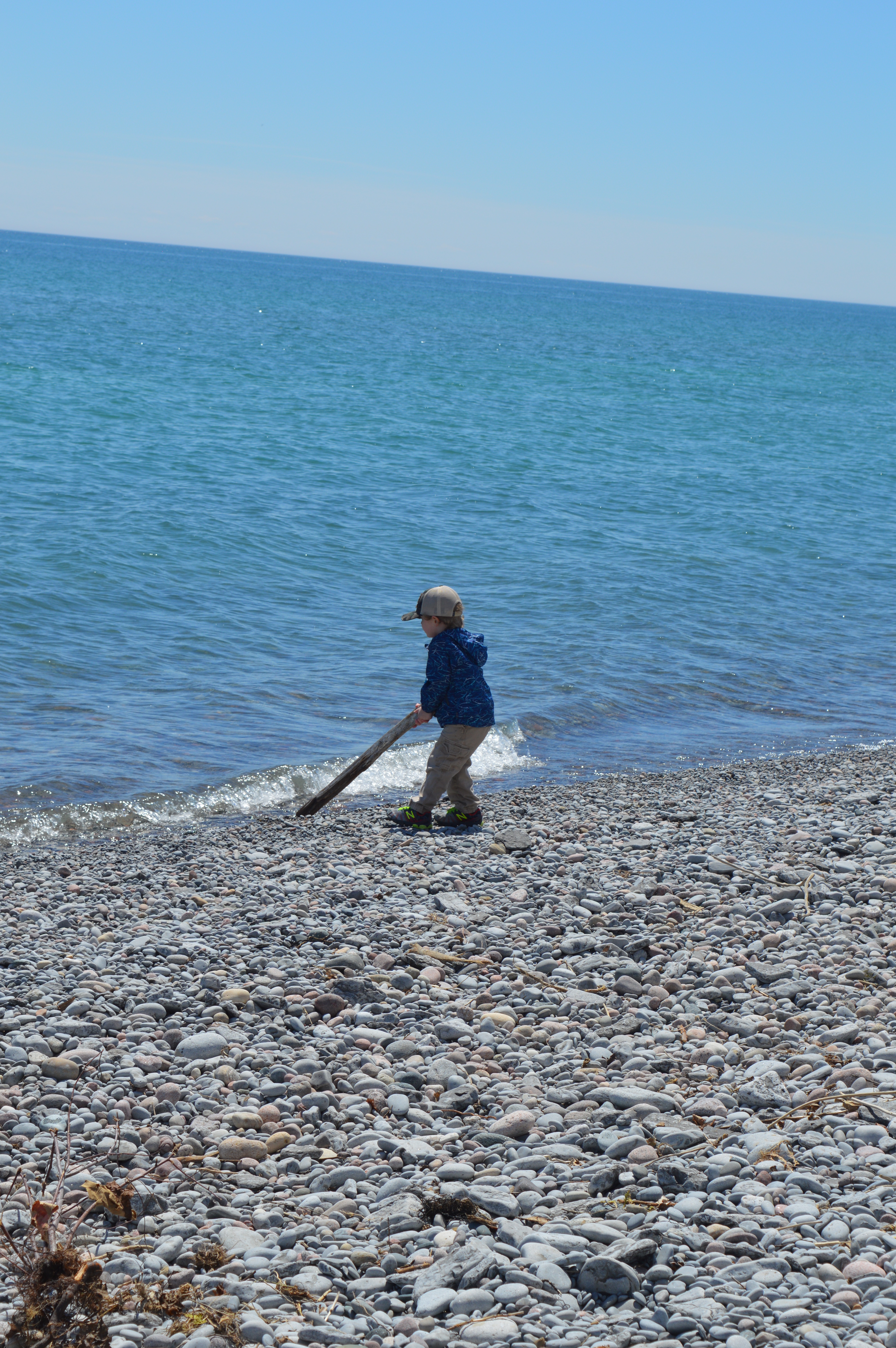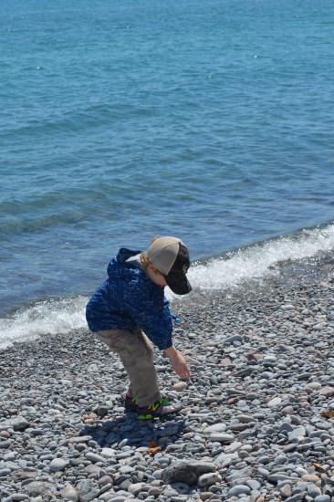 We’re pretty lucky to live in a town with two relatively good beaches to hang out at. Sure, the majority of this one is covered with rocks but that’s what makes this one so fun! I’ve always had a love of collecting ‘pretty rocks’ or interesting rocks so taking Nate here and scouring the beach together finding ones we both like is something that I absolutely love plus Kurt is awesome at skipping rocks so Nate has a blast watching how far the rocks skim across the water when Kurt throws them. There’s a small park, grass to run around on, and a small sandy area too so really, what’s not to love? Our other beach tends to attract more people since it’s more sand than rocks but it’s just as fun and a great day to spend the afternoon. I’m so looking forward to spending summer days on these two beaches! Last year was our first summer in our new house and unfortunately because of an especially rainy winter/ spring/ early summer, the beaches were basically washed right out. The water levels were insanely high and what used to be waterfront beach was literally just water. It was definitely upsetting to have been so excited about having an entire summer off with Nate and Eli only to have Mother Nature kind of ruin it so this year I want to try to go as often as we can before I go back to work.