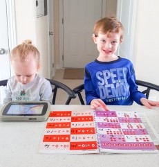 During our morning “class” Eli will play or watch videos on his Leapfrog while Nathan works on the Scholastic dry erase books which is is obsessed with. If he does more of the math sections in his books, then in the afternoon when both Eli and Sage are napping, we will complete his language activity assigned by his teachers. Or if he decides he’d rather practice his writing and spelling skills, we’ll focus our time on the math portion of his school work. So far we’ve been making this routine work for us as best we can. It’s hard on everyone involved. Nathan misses his school, his teachers, and his friends. I miss the time I get to myself when both Eli and Sage are napping and I also miss the alone time with the two of them. And I know as much as Eli loves having Nathan home, he also enjoys his time with only me as well. So it’s been an adjustment for sure but we’re making it work one day at a time! Not every day is perfect but we’re all doing our best.