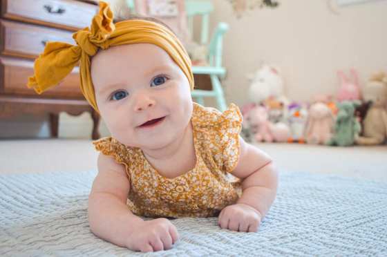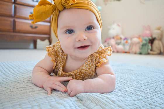 She started rolling over from belly to back and literally seems like she wants to start crawling any day now